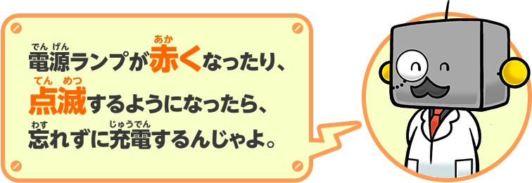 電源ランプが赤くなったり、点滅するようになったら、忘れずに充電するんじゃよ。