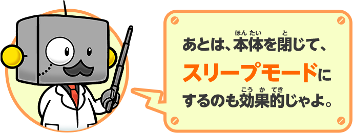 あとは、本体を閉じて、スリープモードにするのも効果的じゃよ。