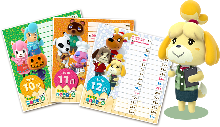10月〜12月は『とびだせ どうぶつの森 amiibo+』のカレンダーだよ