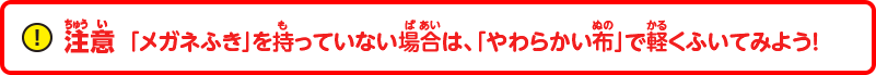注意:「メガネふき」を持っていない場合は、「やわらかい布」で軽くふいてみよう!