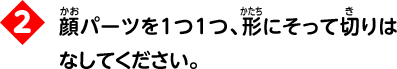 2 顔パーツを1つ1つ、形にそって切りはなしてください。