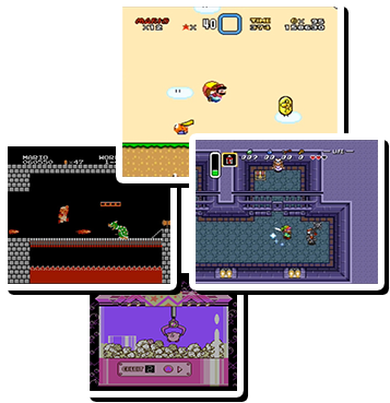 スーパーマリオブラザーズ(ファミコン):シリーズ1作目! とぶ、走る、投げる、いろんなアクションを使って、ピーチ姫を助け出そう!/スーパーマリオワールド(スーパーファミコン)マントをつけて空をとんだり、ヨッシーに乗って敵を倒したりして、恐竜ランドを冒険しよう!