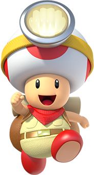 キノピオの仲間には「キノピオ隊長」と呼ばれるキノピオもいるよ。とっても冒険が好きそうな格好をしているんだ!