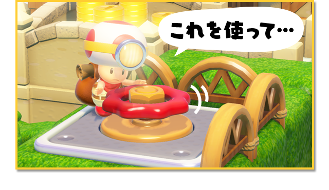 Wii U『進め!キノピオ隊長』はWii U GamePadだけで遊ぶことができるぞ。ジャイロ機能やスティックを使ってぐるぐるとステージを回転してみたり、タッチで仕掛けを動かして、ゴールにあるパワースターを目指そう。他にも、Wii U GamePadの画面がキノピオ隊長視点になるステージもあるぞ!進め!キノピオ隊長!