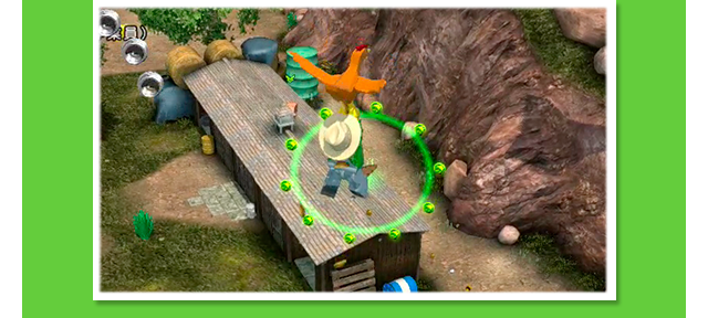 ニワトリのタマゴを弾にして発射したり、ニワトリにつかまって空を飛ぶことができるスーパーな変装なのだ。