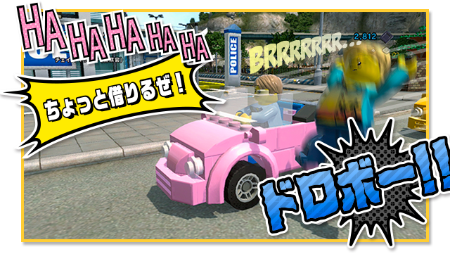 ちなみに、街に走っている車は、街の平和のため市民のみんなが快く(?)貸してくれるぞ。自分好みの車があったら、Xボタンで乗り込んじゃえ!