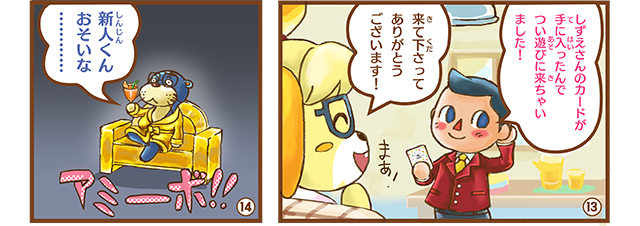 amiiboカードを読み込むと、カードのキャラクターが依頼を持って、たぬきハウジングにやって来ます。