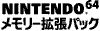 NINTENDO 64に「メモリー拡張パック」を接続することで、NINTENDO 64本体のメモリ容量を36Mbit拡張することができます。これによって、ゲーム画面をさらに綺麗にしたり、その他様々な性能がアップします。 ※「メモリー拡張パック」の機能を利用するためには、NINTENDO 64メモリー拡張パック対応ソフトが必要となります。 |