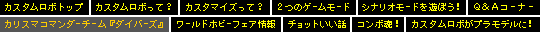 少ない情報の中から、彼らに会える可能性のある場所が分かったぞ!謎の多いカリスマコマンダーチーム『ダイバーズ』と対戦するいいチャンスだ。 それは、2000年1月に開催予定の『ワールドホビーフェア』に『カスタムロボ』のゲームコーナーが登場する。そこに『ダイバーズ』のチームが姿を現す!ということなのだ。 カリスマコマンダーと対戦したいコマンダー達は、近くで開催される『ワールドホビーフェア』を要チェック! |