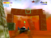 「64」の3Dスティックによって、華麗に宙を舞う戦闘機アーウィン。「スターフォックス64」では宙返りや高速反転など、よりスリリングな飛行テクニックを満喫する事ができます。前作でもおなじみのローリングも、大きくパワーアップ!地上戦で登場するタンクが、とても軽快な動きを見せるところも、「スターフォックスらしさ」と言えるでしょう。振動パックを使えば、臨場感もグ〜ンとアップします! |