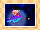 ところ変わってポップスター。今日もうつくしい星空です。 カービィがお星さまを見あげていると、空からリボンが落ちてきました。 こまっているリボンから話をきいたカービィは、 ポンッと胸をたたいてみせます。 「ぼくもいっしょにクリスタルを探してあげるよ!」 こうしてカービィの新たな冒険が始まったのです。 |