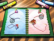 スタンプになってしまったキノピオを、まほうのクレヨンでかこんでもとに戻してあげましょう。2人で協力してかこまないとキノピオはもとに戻りません。