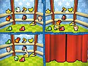 空中ブランコにぶらさがって、さくらんぼを受け渡しします。渡したさくらんぼの実の数によってポイントが入ります。