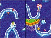 こわれてしまった氷の道を、3つのアイスブロックを運んで完成させてください。氷の道はすべりやすく、落ちるとその場からやりなおしになります。