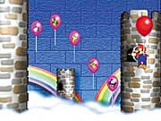 アイテムの入った風船が上下に動いています。ほしいアイテムをねらって矢をうってください。