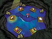 地底の湖にドッシーがいます。プレイヤーはドッシーの背中でヒップドロップをしてドッシーにアイテムを拾ってもらってください。