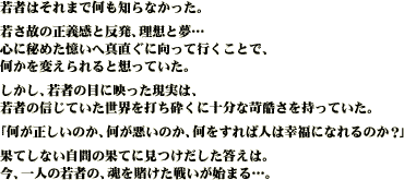 「オウガバトル64」の時代設定は前2作と同じ時代。今回は全8章から成るオウガバトルサーガの第6章のストーリーが進行します。その進行に伴って行う各フィールド攻略の前後にはイベントシーンが挿入されていて、物語を進める上で避けて通れない様な選択を迫られたり、その結果で思いもよらなかった事態が発生したりすることになります。キャラクターは何度も究極の選択をくり返し、その選択が物語そのものを変化させていきます。 思いがけない相手の友情や人の弱さや欲望、出会いと別離。 若者が見た現実は、彼の価値観をいかに変えていくのか? 人々との出会いは、彼の人生をいかに変えていくのか? オウガバトルをオウガバトルたらしめる要素満載に進む物語は、シリーズとしての壮大なスケールをも同時に楽しむことができます。 |
