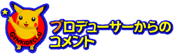 「ピカチュウげんきでちゅう」のプロデューサーである石原恒和さんからのコメントです。ソフトに関わるいろいろなお話が聞けますよ! |