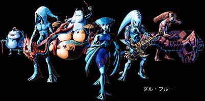 | [ゾーラ族]水と共に生きる種族、ゾーラ。そのゾーラ族のバンド「ダル・ブルー」は種族の垣根を越えた人気を誇っている。 |