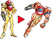 | ノーマルサムスからパワーアップサムスに変身するアイテムだ。パワーアップサムスになると、ダメージが半減し、さらに走るスピードもアップする。 |