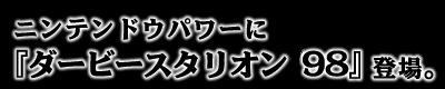 競馬はロマンだ!遊び方は無限だ!これは一生遊べる! ニンテンドウパワーに『ダービースタリオン98』登場 ゲーム好きの間では、その奥の深さから「一生遊べる」とまで言われた『ダービースタリオン』です。競馬ファンのすそ野を広げ、血統のおもしろさを日本中のゲームファンに伝え、社会現象にもなった最高傑作ゲームです。その新データ版がニンテンドウパワーに登場します。 新データ版『ダービースタリオン98』は、中央競馬の最新レースプログラムに対応です。種牡馬や繁殖牝馬のデータも『ダービースタリオン96』から大幅に刷新されています。作者・薗部氏の話によれば「脚質による有利不利もなくなって、よりリアルなレースシーンに」なったとか。画面操作の早いスーパーファミコンで自分の馬をたくさんつくろう! というマニアックな話はさておき、過去のダビスタを知らないけれど「やってみたい」人にとって、ニンテンドウパワー版はうってつけの存在です。SFメモリカセットを持っていれば、2500円でダビスタを体験できます。競馬を知らない人でも、すぐに溶け込めるのがダビスタの良いところでもあります。「ダビスタで競馬を知った」という人もたくさんいるくらいです。ダビスタをはじめるうえで、難しい専門知識は必要ありません。 仔馬が生まれて、育つたびに愛着が生まれて。最強馬をつくるもよし、好きな名馬を再現するもよし。何度やっても、けっして同じ結果にならない。だからやめられない。いつまでも遊んでしまう。そんなダビスタがニンテンドウパワーで待っています。 |