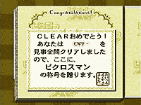 各モードともクリア時に、キミのプレイスタイルを評価してくれる「賞状」なるものが画面に表示されるぞ。頑張ったキミにはかっこいい?称号が、そうでないキミにもそれなりの?称号が与えられるぞ。称号は各モードそれぞれ4つずつ用意されている。え!?どうやって称号が決まるかって? それはキギョウ・ヒ・ミ・ツ。