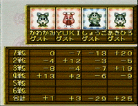 | 激戦を勝ち抜いた精鋭雀士4名が決勝で火花を散らした。最初に先手を取ったのが“あきひろ”。親の連チャンでこつこつ得点を重ね半チャン3回を終わった時点で頭一つ抜けだしトップ。優勝をこの時点でほぼ手中に収めた。最後の半チャンは“あきひろ”にとって厳しい局面ではあったが、ひたすら耐え、振り込みを最小限にくい止め見事優勝!。それを追いかける“YUKI”の得点は伸びず、+30以上の差を詰めることは出来なかった。“かわかみ”も最後よく詰めたが、いかんせん前半の負けが響き2位に僅かに届かなかった。 |