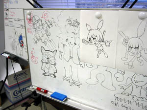 ゲームのネタがたくさん貼ってあるボードだよ! 黄色い紙は全部ボツになったゲームなんだって!! |