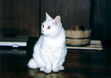 | なにかを うかがってる 『ぼぢ』。 まっしろとか まっくろなネコは しんけいしつなんだって。 『ぼぢ』は どうなのかな? |