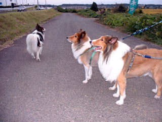 | おともだちの『ケビン』(ミニコリー)と いもうとの 『あいちゃん』(Tカッププードル)。 みんな すごく なかが いいんだって! |
