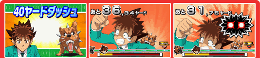 ケルベロスに追いつかれないようにAボタンを連打して40ヤード走り抜け!ケルベロスの目が光ったら猛追の合図だ! |