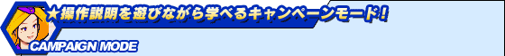 | キャンペーンモードでは、「ブラックキャノン」や「火山」、「レーザー砲」など特徴的な仕掛けを持ったマップが多数登場!各エリアの最後には「ファクトリー」と呼ばれる強力な敵施設が、プレイヤーを待ち構えています。また、新地形「ミサイル基地」、「パイプ」によって他のモードで遊べるマップのバリエーションも増えています。 |