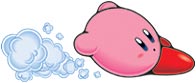 カービィは空気をいっぱいに吸い込んで、ホバリングで空を飛ぶことができます。