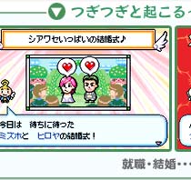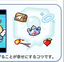 | 操作は簡単。いつでもどこでも家族をあと押し、見守るだけ。 パートナーのキュピットと一緒に、それぞれ考えをもって行動する家族たちの関心を、恋愛や仕事など様々なことに向け、幸せになれるよう導きます。電源を切っている間もゲーム内の時間は進み、何かをしながらでも遊ぶことができるため、短時間で気軽に楽しめます。 |