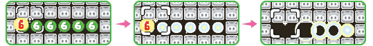 すうじパネルは(6)までチェイン(連鎖)すると消えます。 |