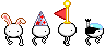 うさ耳、三角帽、はた・・・この他にも色々なかぶりものがあります。 |