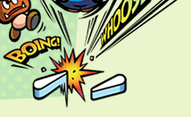 クリボーにノコノコ、ジュゲムにテレサ…。おなじみのキャラクターが立体感あふれるグラフィックでたくさん登場!美しく描かれたマリオワールドを、ボールとなってかけめぐりましょう! |