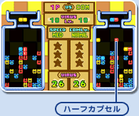 対戦プレイで連続消しや同時消しを行うと、相手のビンにハーフカプセルを落として攻撃することができます。