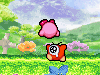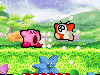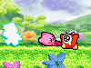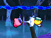 | 水中では、吸ったりはいたり、コピー能力を使用したりはできません。かわりに口から勢いよく水をはきだして、敵を攻撃できます。(ソード、パラソル、ハンマーをコピーしている場合は、それぞれの能力で攻撃します。) |