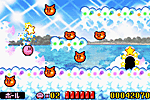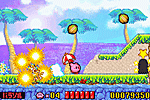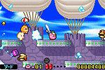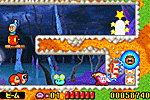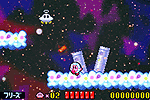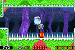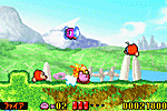 緑深い森と岩場が最初のステージです。 気持ちよく進めますので、カービィのアクションをいろいろ試してください。 |