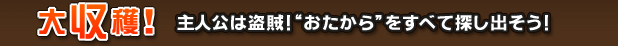 ゲームの目的は奪われたレッドダイヤを取り戻すこと! でも、盗賊団という仕事は世界各地の〈おたから〉を探し出すのが本来の仕事。『スクリューブレイカー』では、マップのあちこちに珍しいおたからが隠されているので、それらを探し出してコレクションしていきましょう! |