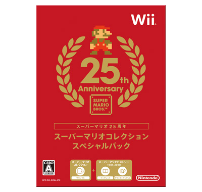 『スーパーマリオコレクション』=『スーパーマリオコレクション スペシャルパック』。スーパーファミコン用の同名ソフトをWiiで復刻。「スーパーマリオ25周年」を記念して、2010年10月に発売されたスペシャルパッケージ。マリオ25年間の歴史や開発資料などを掲載した「ブックレット」と、マリオの音楽が収録された「サウンドトラックCD」付き。