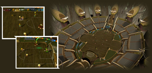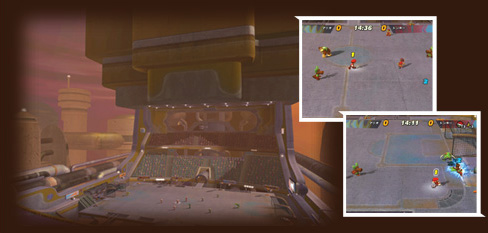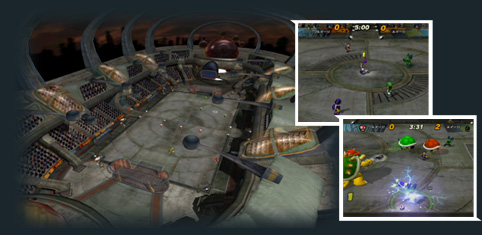 | ワリオとワルイージの出資で建造されたアンダーグラウンドアリーナは、とある都市の地下に位置しています。このスタジアムは、W型の飾りが座席を取り囲み、かなり多くの観客を収容することができます。ワリオとワルイージは、このスタジアムで不敗を誇っています。 |