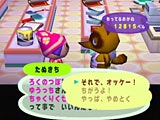 たぬきちに、アイテムの送り先の村の名前と贈りたいプレイヤーの名前を教えます。