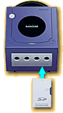SDメモリーカードがセットされたSDカードアダプタを、ゲームキューブのスロットBに差し込んでください。