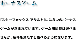 ボーナスゲーム/「スターフォックス アサルト」には3つのボーナスゲームが含まれています。ゲーム開始時は遊べませんが、条件を満たすと遊べるようになります。