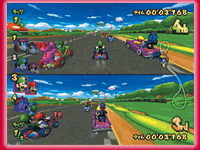 4つのコントローラをつなげれば、1台のゲームキューブで最大4人まで同時にレースに参戦することができる!2人で1台のカートを操るタッグプレイなら2分割画面で、1人1台のシングルプレイなら画面を4分割させて4人レースが可能!仲間が大勢いると、レースも盛り上がるぞ!