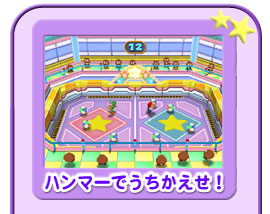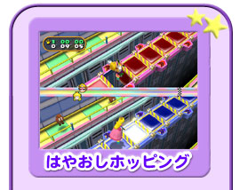 パネルにうつったボタンをすばやくおしてホッピングで競争だ。