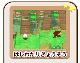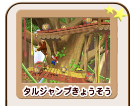 つぎつぎにころがってくるタルをジャンプでかわしながら、ドンキーより早くゴールするんだ。