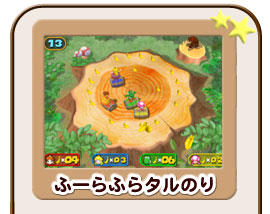 タルにのって大きな切りかぶの上にあるバナナを集めよう。